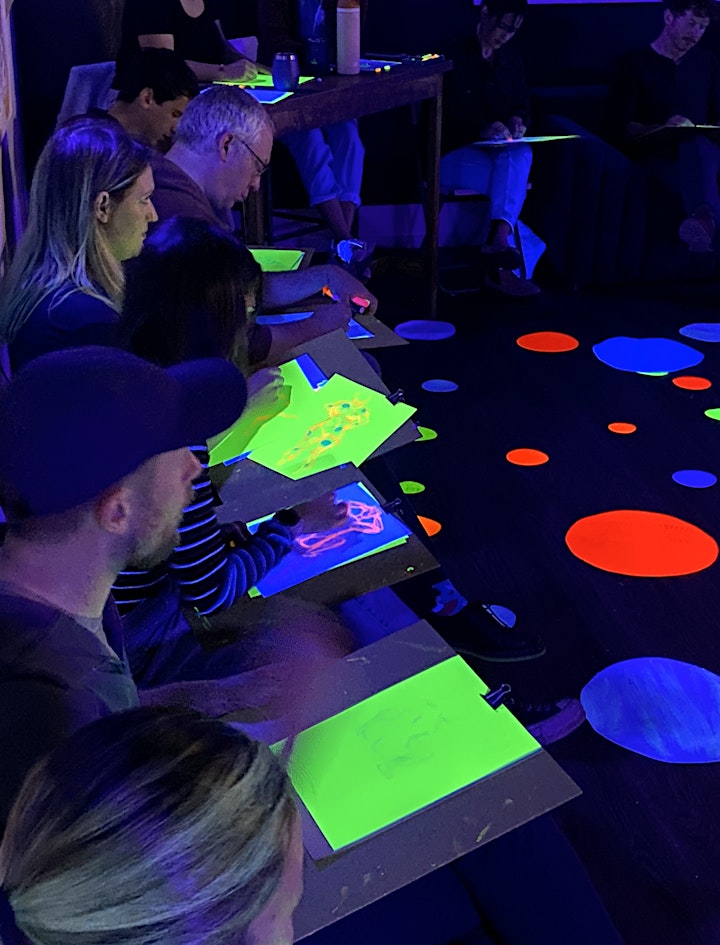 Glow Paint Nite and Glow Life Drawing: Unique events featuring neon paints and UV lighting for a vibrant art experience.