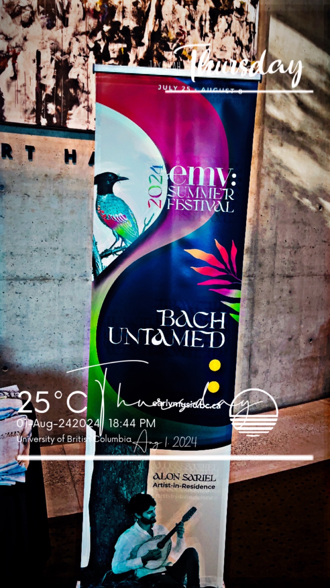 As an enthusiast of both classical and world music, I was particularly excited about this unique blend of Bach’s masterpieces with unconventional instruments and vocal styles. A vibrant celebration of creativity, bringing together nearly 50 international and Canadian artists, some of whom made their EMV debuts. Among these talented artists are Canadian cellist Cameron Crozman, pianist Meagan Milatz, Hindustani and Jazz vocalist Shruti Ramani(who made a special guest performanc at the concerto I atteneded!), and Lebanese-Palestinian Canadian tenor Haitham Haidar.