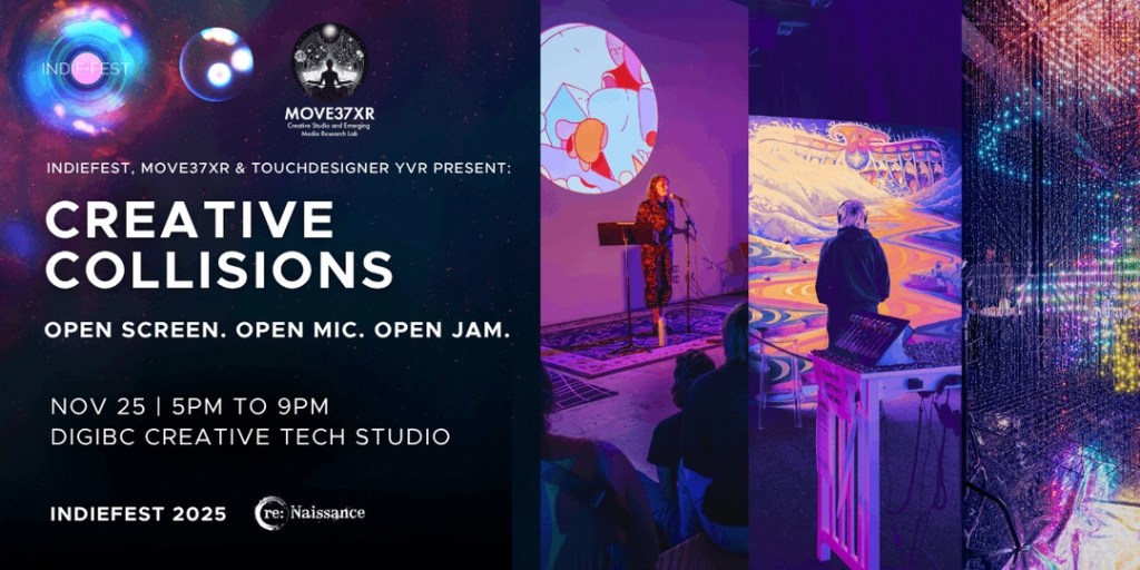 Monday nights in this city are usually dead, reserved for recovery,rain and peronally for me the $5.99 Dosas on Kingsway (yup, insane deal, especially given the prices these days….), but re:Naissance, alongside TDYVR and MOVE37XR, is turning the DigiBC studio into a living laboratory.
